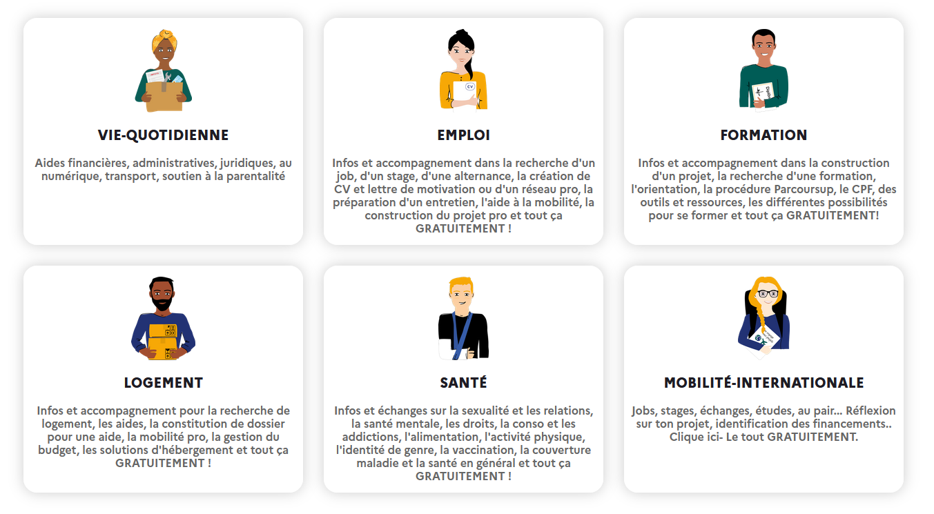 Les thématiques abordées sont variées : emploi, formation, logement, santé, mobilité, engagement…