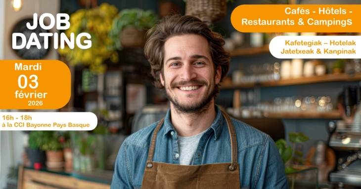 👉 Job dating: Sans rendez-vous, rencontrez en face à face les employeurs du Pays Basque qui recrutent des saisonniers et trouvez un emploi près de chez vous.